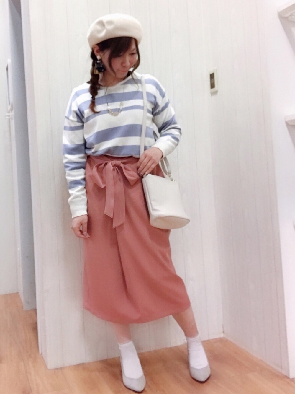 こんにちは( *>ω<*)/ ご覧頂きありがとうございます♡ いいね♡お気に入り、フォローもめっちゃ嬉しいです😆🙌 覗いて下さって(๑ˊ͈ ꇴ ˋ͈)ᵃʳⁱᵍᵃᵗᵒ〜♡॰ॱ 今回はピンク×ブルーのマリンコーデ♡ トップスはシアバター配合の素材で肌触りもよくボーダーのカラーが可愛い💕 スカートは以前履いたイエローの色違いのタイトスカートです♡ 落ち感のある生地とウエストリボンでスッキリ✨ 小物はホワイト系でまとめてみました😆✌️ 柔らかいカラーの組み合わせが女のコ感アップ💖 これからの時期のお花見やデート♡などにいかがでしょうか😊⁉️ 告知ですが、ホワイトデーには仲良くしてる舞妓ちゃん&✱chii✱ちゃん主催の白フェスがあります😆 ホワイトのアイテム身につけて、ぜひぜひ参加しちゃいましょう😆✌️ ではでは♡ 最後までご覧頂きありがとうございました♡♡
