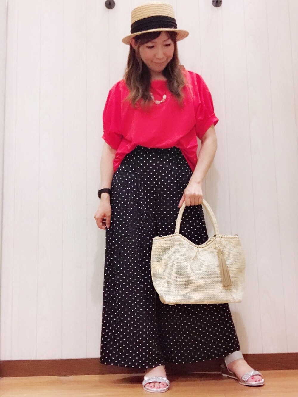 こんにちは(◍˃̶ᗜ˂̶◍)ノ" ご覧頂きありがとうございます♡ いいね♡お気に入り、フォローもめっちゃ嬉しいです😆🙌🙌 覗いて下さって(๑ˊ͈ ꇴ ˋ͈)ᵃʳⁱᵍᵃᵗᵒ〜♡॰ॱ 皆さんの所は台風大丈夫でしたか?? 私はちょうどお休みだったので、引きこもってました(笑) 雨や風が強いとこがまだまだあるので、皆さまお気をつけ下さい(*ˊ˘ˋ*) 今回はプチプラコーデ✨ ★トップス ¥1990+税 目をひくようなキレイなカラーのトップス👀✨ ブラウスっぽく見えてサラッとした生地感のTシャツです😆 ★ゆるてろスカンツ ¥1990+税 その名の通り、ゆるっとしたシルエットにテロンとした生地感が可愛いスカンツ💕 ウエストゴムで楽ちん😆🙌 色んな柄があり、色違いでも欲しくなるアイテム👍 ★バック ¥1990+税 ショルダーにできる紐もあり、2wayで使えるかごバッグ😆 タッセルのチャームもアクセントで可愛い💕 ★サンダル ¥2990+税 ペタンコで楽ちんなのに、キラキラのラメが足元を華やかにしてくれるサンダル😆👍 なんとトータル合わせても1万円で収まるというプチプラアイテムばっかり✨ セールの時期だけど、シューラルーには定価でもプチプラがいっぱいです😆🙌🙌 ぜひぜひ♡覗いて見てね😆💕 ではでは♡ 最後までご覧頂きありがとうございました♡♡
