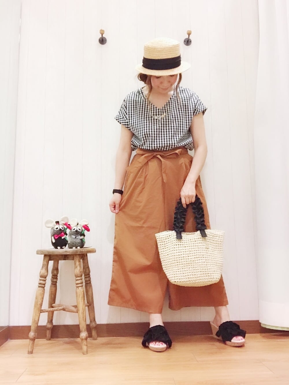 こんにちは( *>ω<*)/ ご覧頂きありがとうございます♡ いいね♡、お気に入り、フォローもめっちゃ嬉しいです😆🙌 覗いて下さって(๑ˊ͈ ꇴ ˋ͈)ᵃʳⁱᵍᵃᵗᵒ〜♡॰ॱ 毎日暑いですね💦 私の地元でも最高気温が36℃とかでした😱😱 ほぼ体温と一緒やん➰🤚 外でのお仕事の方、ほんと尊敬します‼️ ご苦労様です😊 無理はしないで下さいね😊 今回はBBQ🍖コーデ✨ ★トップス トレンドのギンガムチェックのブラウス😊 深すぎないVネックにシワがつきにくい生地感、お値段も¥1990+税とプチプラ😆👍 ★パンツ ウエストリボンでの足長効果✨ こちらも生地のハリ感があり、シルエットスッキリ✨ トレンドのブラウンチョイス😆👍 小物もバックのフリルとサンダルのフリルで女子感プラス💕 素材とカラーを合わせてアクセントに💕 おめかしフレデリックもさり気なく一緒に…😻 ではでは♡ 最後までご覧頂きありがとうございました♡♡
