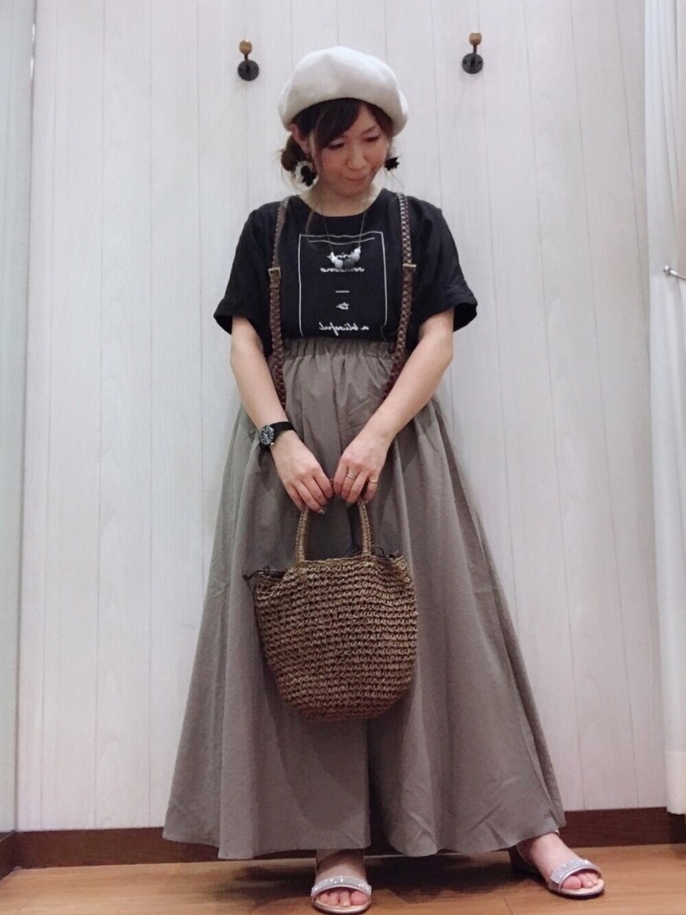 こんにちは(◍˃̶ᗜ˂̶◍)ノ" ご覧頂きありがとうございます♡ いいね♡お気に入り、フォローもめっちゃ嬉しいです😆🙌🙌 覗いて下さって(๑ˊ͈ ꇴ ˋ͈)ᵃʳⁱᵍᵃᵗᵒ〜♡॰ॱ 毎日暑い日が続きますね💦 ほんと溶けてしまいそうです(ó﹏ò。) 今回は夏物アイテムで秋カラーコーデにしてみました😆🤚 ブラック×カーキ 合わせるだけで、おしゃれ感マシマシ⤴︎ ⤴︎な組み合わせ😆👍✨ シンプルなロゴTにマキシ丈のロングスカートと合わせてみました‼️ トップス ¥1998+税 スカート ¥2998+税 どちらも新作で、まだ掲載は無いようですので、後ほどまた更新しますね😊 今回のSALEアイテムはバックとサンダルです✌️ ★告知★ よっぴちゃん&yuuちゃん主催のしましまフェス ぜひボーダーアイテムを使って楽しみましょう~♡ ではでは♡ 今週も頑張りましょう😆 最後までご覧頂きありがとうございました♡♡