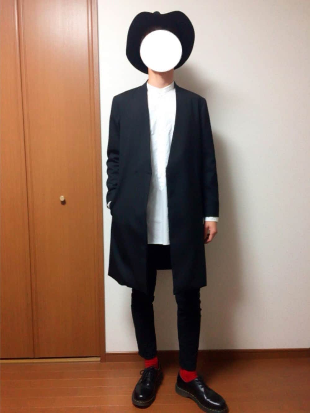 ゆーじのチェスターコート「TWノーカラーコート(HARE)」を使ったコーディネート