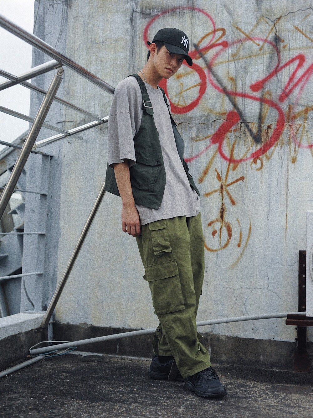 ホワイト系のトップスを着用したメンズの春コーディネートの1枚目の写真
