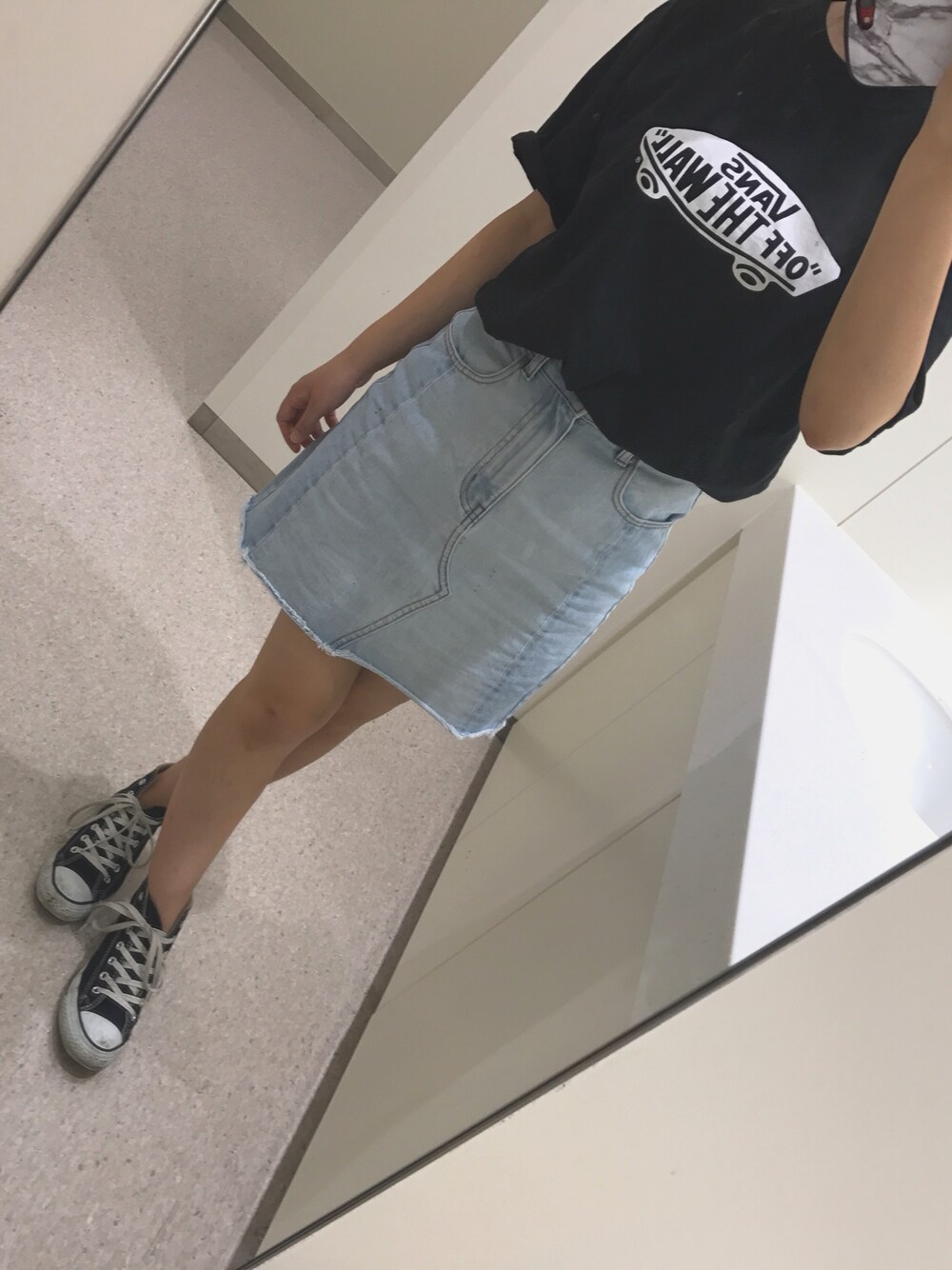 7月に入って急に暑くなったのでデニムのタイトスカートにTシャツを合わせてカジュアルにしました😍 大好きなVANSのTシャツは大きめでダボッと感がお気に入り❤️