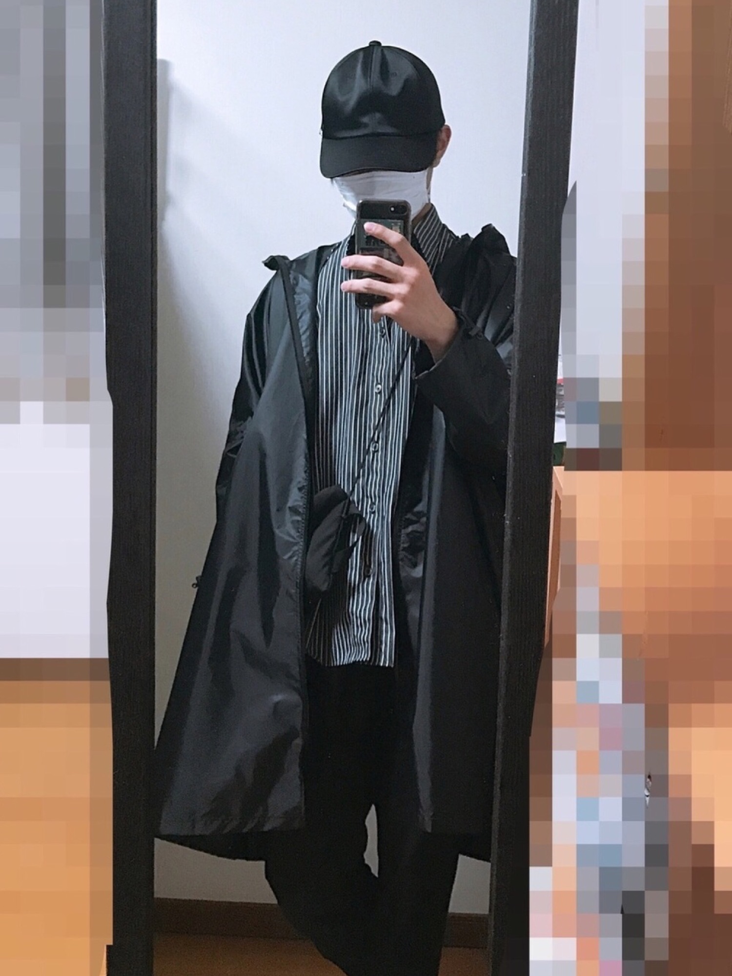 夜ちょっと買い物行く時コーデ。笑笑 このレインコート使いやすいし安めだったしめっちゃ好き!! サリバンのストライプシャツはシンプルなかっこよさありますよね……🤦♂️ やっぱ黒コーデが落ち着く🤦♂️🤦♂️ 写真慣れてないですけど、こんな感じで投稿してくのでいいね、フォローお願いします🤲 てか誰か自撮りのコツ教えて( ˙-˙ )