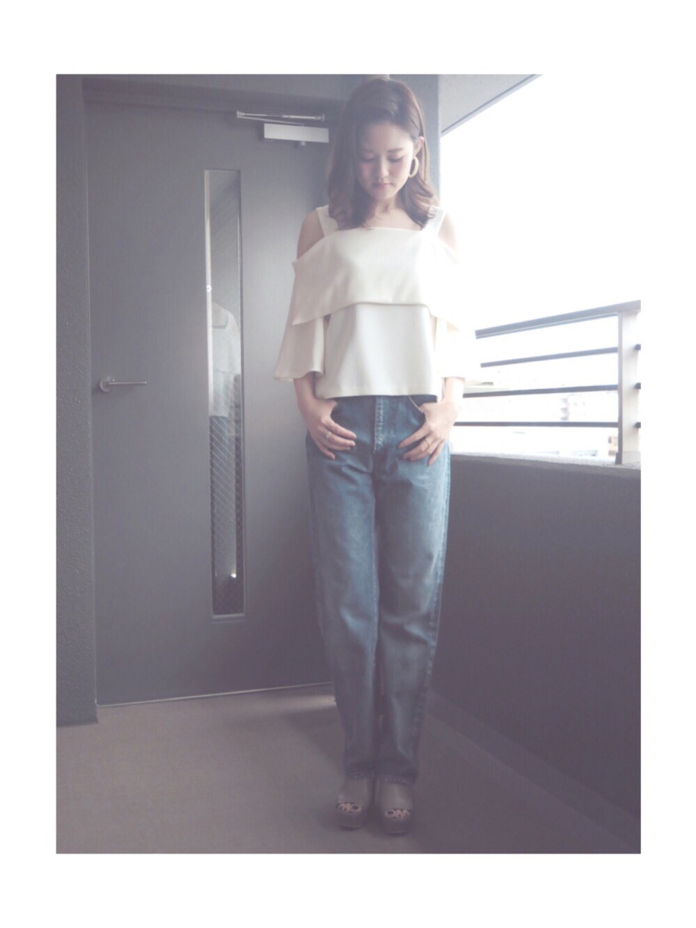 お気に入りのオフショル1枚で早く出かけたい🙄💓 今季は露出度高めだなー💭💭💭