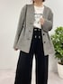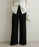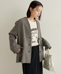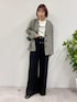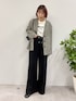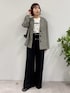 パンツ38サイズ着用 ノーカラージャケットは大きすぎないシルエットが女性らしくもカジュアルにも着れて、万能に使える一枚です! 春先のジャケットとして重宝します◎ ポンチパンツはイージーな履き心地ながらもブラックだとカジュアルになりすぎないので、楽ちんと綺麗見えの両方が叶います!
