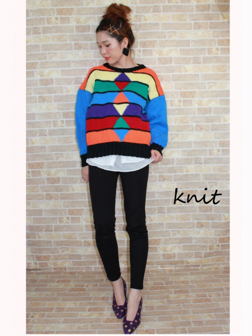 ボーダー×菱形 マルチカラーニットトップス 販売価格:¥4600+tax OWLオンラインショップ レディース古着OWL→検索 OWLオンラインショップ http://www.owl-shop.net/