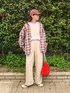 紅葉の葉のカラーをイメージしたコーデ。 これぞ、秋っぽコーデ🍂 ネルシャツは、古着屋で発見して購入しました。たぶんメンズサイズのH&Mのもの。