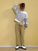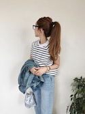 468王道ボーダートップスの着こなし