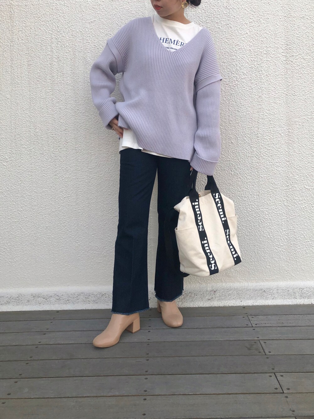 トリウミユカ(骨格ストレート/イエベ秋)(one after another NICE CLAUP)のニット/セーター「袖の取り外し可能 マルチウェイ深Vあきニット」を使ったコーディネート