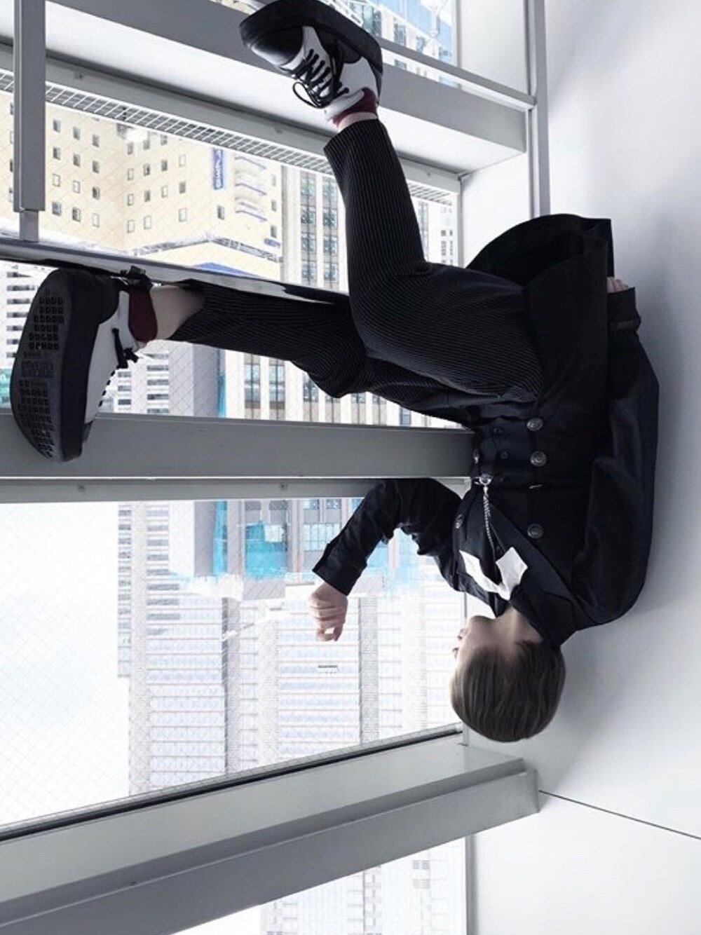 . また、WEARを始動させていきたいと思います。 モノトーンできめてみました。 黒のmilk boyのシャツにベストの形をしたジャケットを羽織っています。 パンツはサルエルパンツになっており変わった形になっています。 TOKYOBOPPERの靴の形もかわいい形になり足元に赤の靴下を入れることでアクセントカラーになっています。