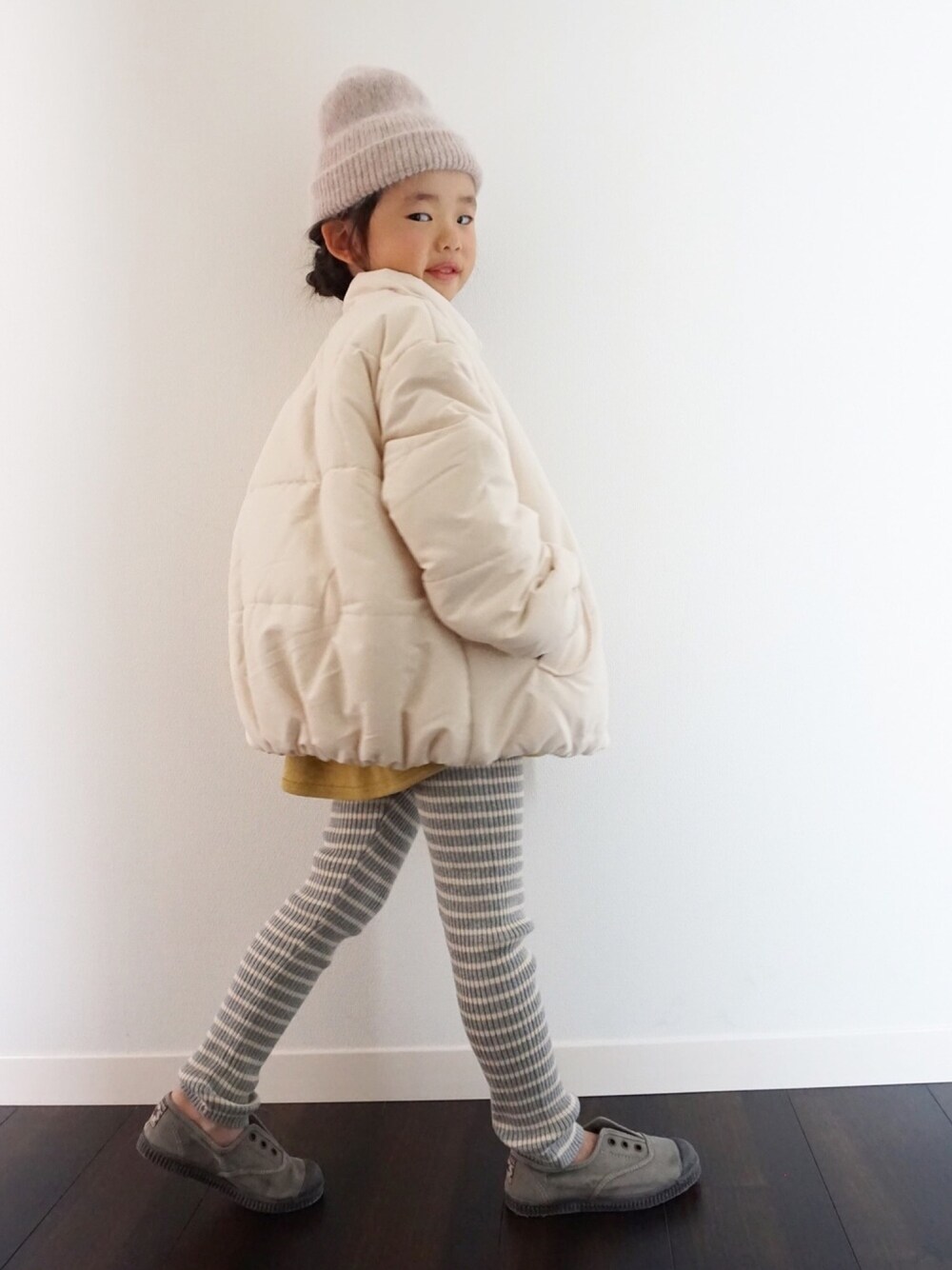 アプレさんの可愛いアウター☃︎ このアウター、丸いボタンもポケットも袖のリブも全然可愛い♡♡♡ まるみのあるシルエットもほんとに可愛いです❤️ 娘も可愛い〜と興奮してました❀ スウェット、レギンスに続きアウターも着用させて頂きました♡