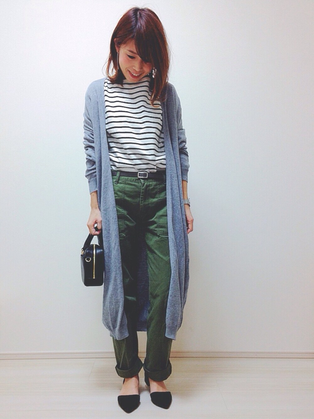 おはようございます♩¨̮⑅* いつもありがとうございます♡ 今日も大好きなカーキ×グレー×ボーダーの着回しコーデ☺︎ 今日で1月も終わりですね( ¨̮ ) 春が待ち遠しい❁