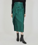 光沢感とジャガード素材で、モードに決まるスカート◎ タイトですが、スリットも入っているため、動きにくさはありません。 トップスはシンプルなブラウスを合わせました。