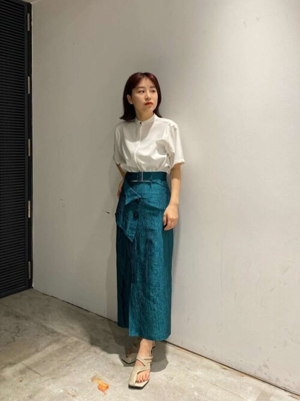 Yuka(UNITED TOKYO 日本橋)のシャツ/ブラウス「【WEB限定】ベーシックハーフスリーブシャツ-ウォッシャブル/接触冷感/防菌防臭-」を使ったコーディネート