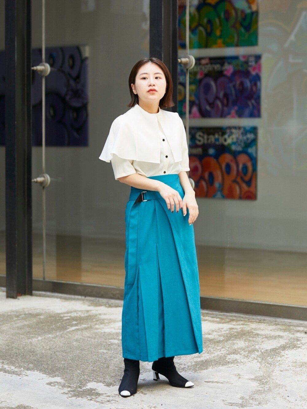 Yuka(UNITED TOKYO 日本橋)のシャツ/ブラウス「【WEB限定】アシメケープブラウス-ウォッシャブル-」を使ったコーディネート