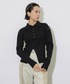 シンプルなオールブラックスタイルに。 トップスは、羽織り部分とキャミソール部分がそれぞれ別でも使うことができるので、着回し力抜群です。 肩のところが開いているので、インナーにシアートップスをレイヤードしてもかわいいです◎