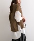 yukariのニット/セーター「ケーブルニットベストレイヤードシャツ【R】」を使ったコーディネート