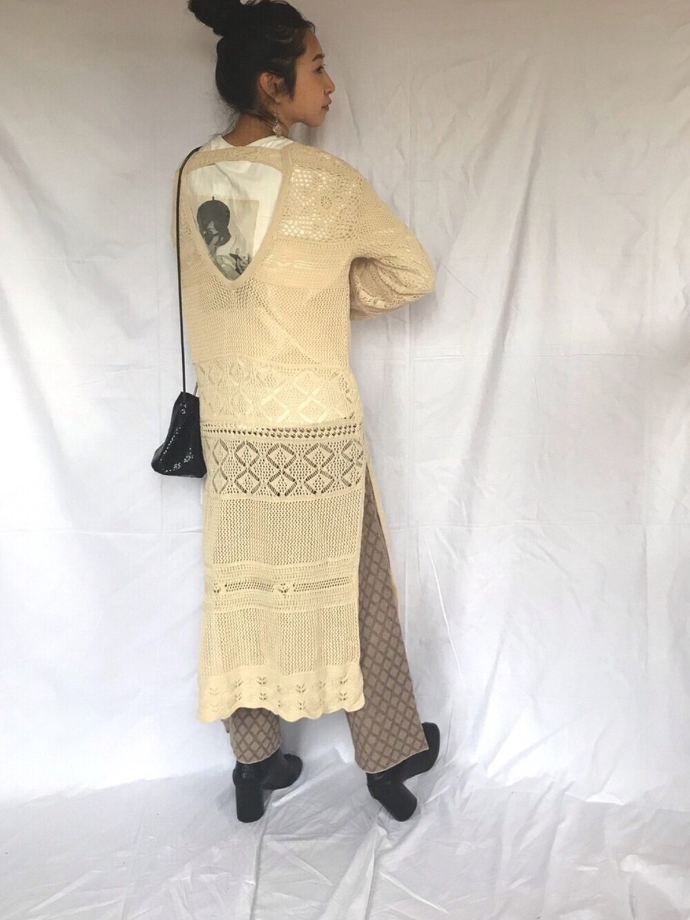 バックオープンな透かし編みワンピースに バックプリントT合わせ ap retro 《アソートガールズプリントTEE【ZOZO原定アイテム】》 後ろにポイントがあるってかわいい♡ 前のロゴもいい感じ! VACANCY 《【VACANCY】ジャガードニットワイドパンツ》 柔らかくて履き心地良ーい✨ 柄もかわいーい✨ Instagram→@___karikarikari___