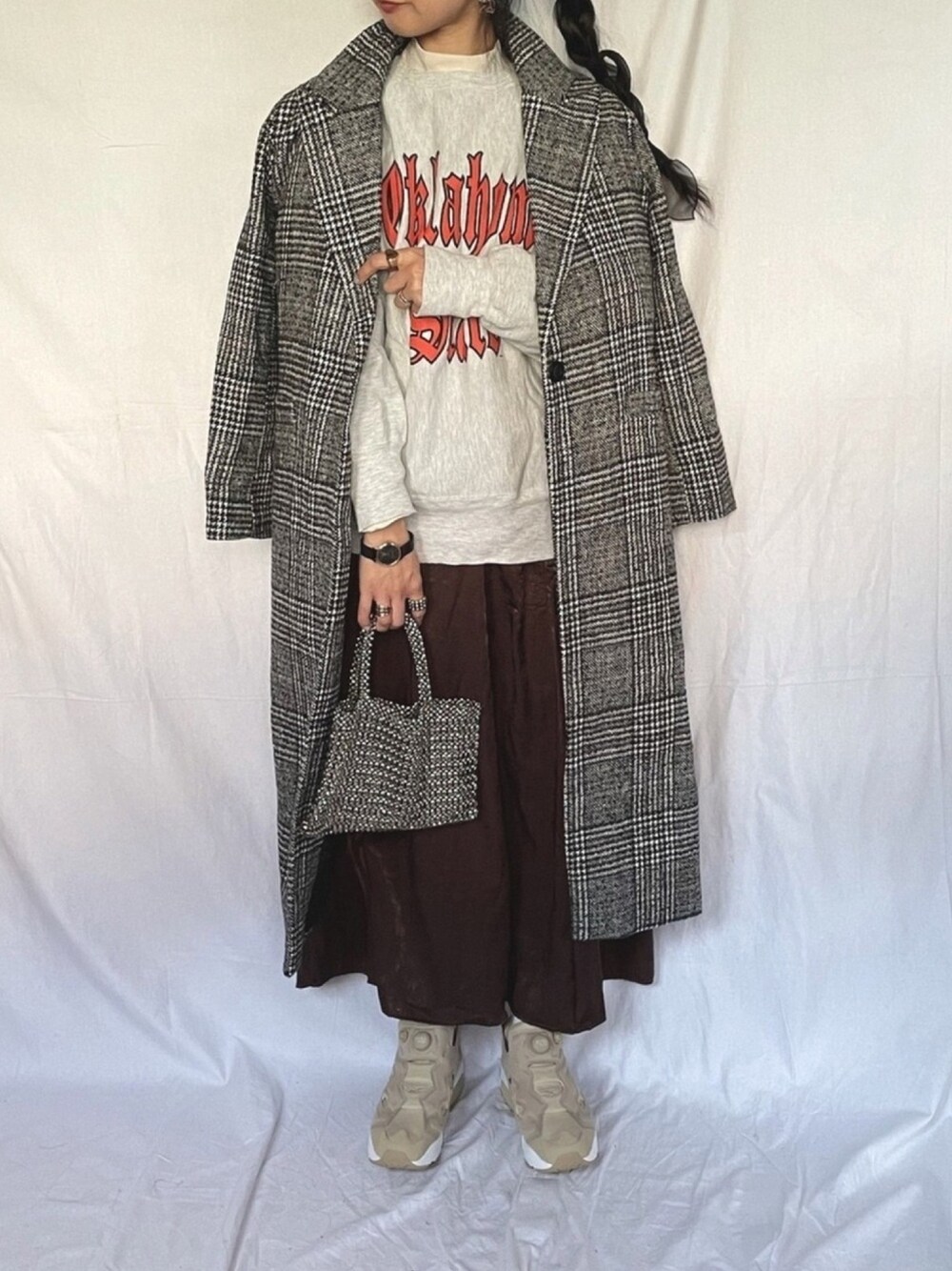 yukariのチェスターコート「グレンチェックチェスターコート」を使ったコーディネート