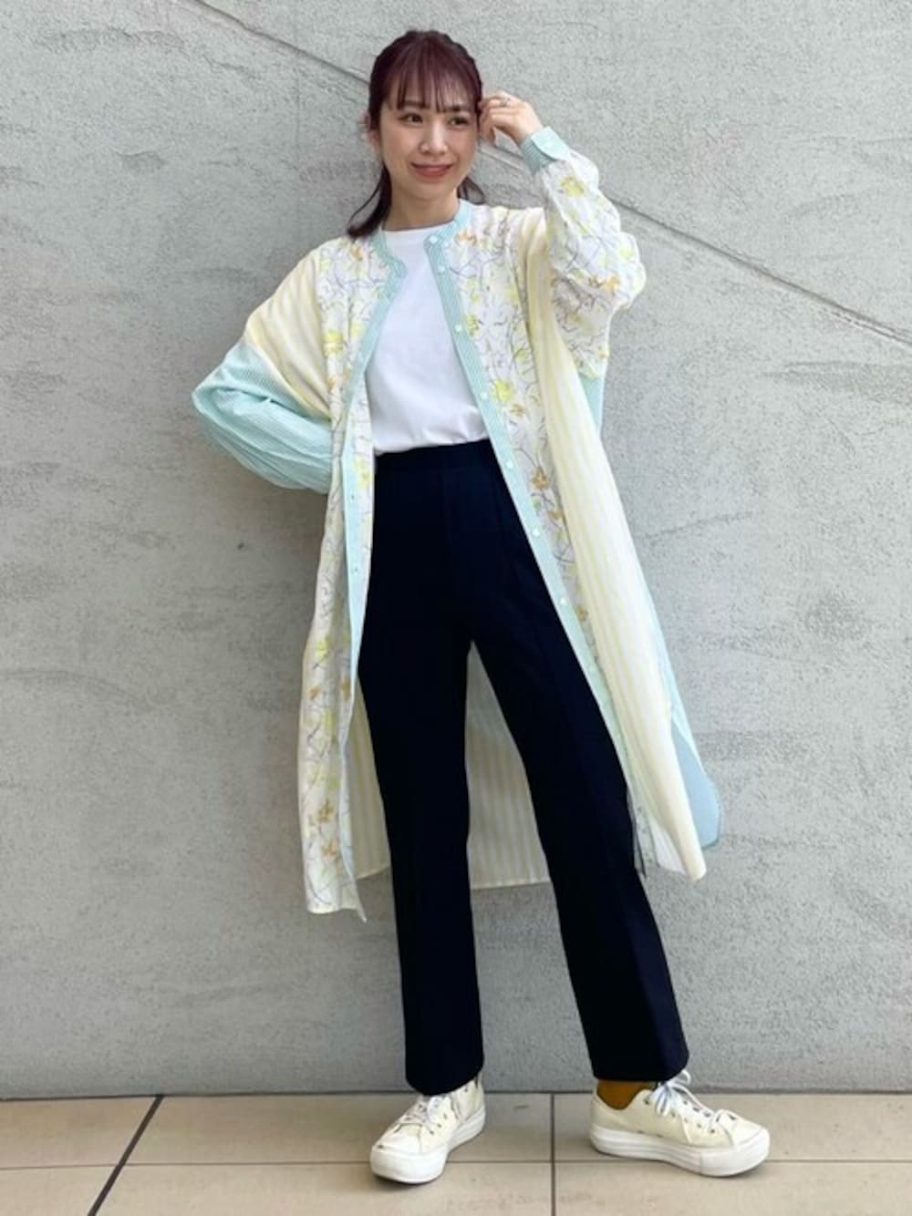 yukaah21のチュニック「Flower × Stripeシャツチュニック」を使ったコーディネート