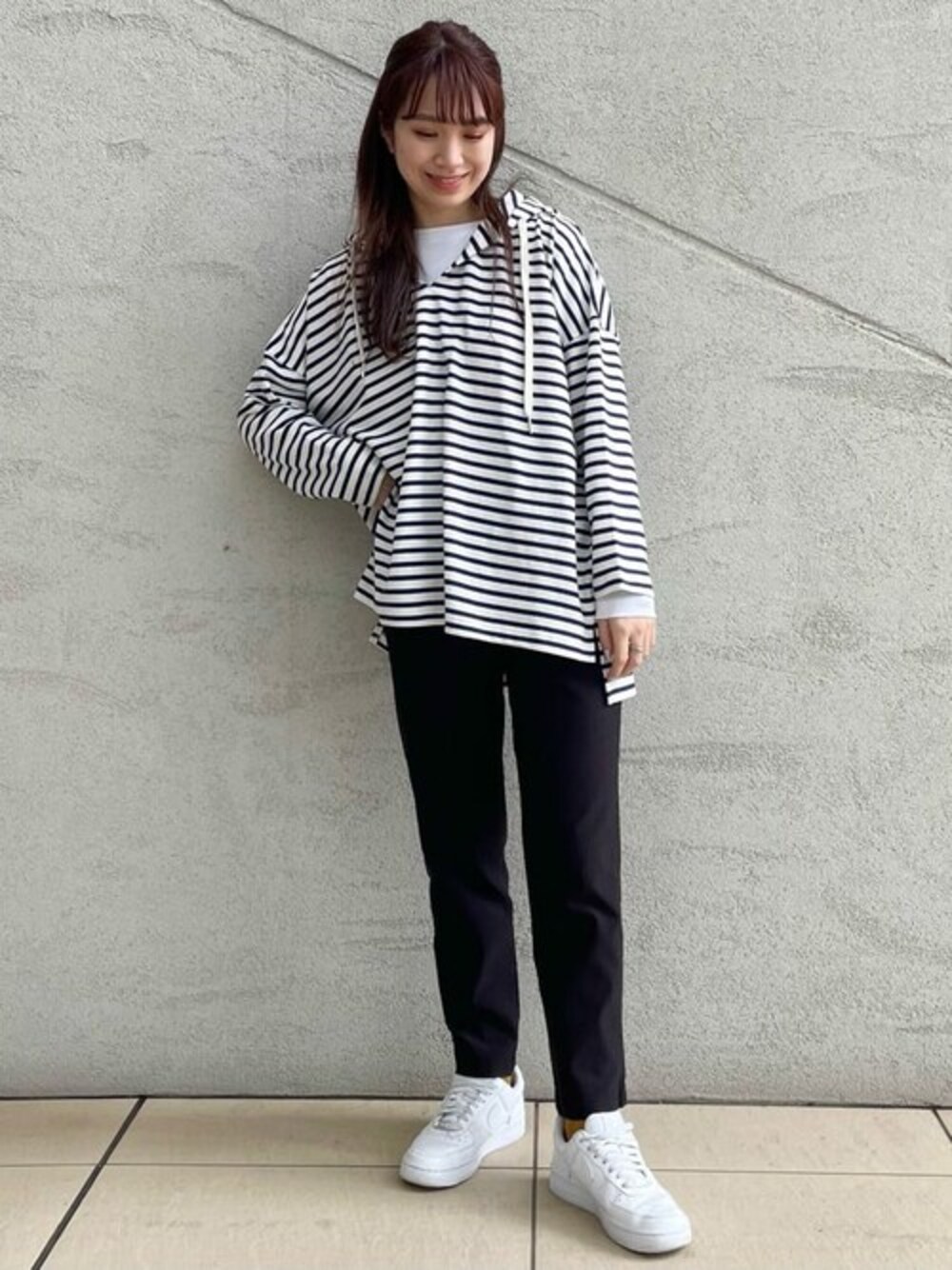 yukaah21のチュニック「フード付きボーダーチュニック」を使ったコーディネート