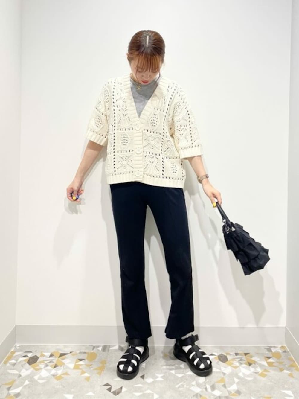 yukaah21のカーディガン/ボレロ「レース柄5分袖ニットカーディガン」を使ったコーディネート