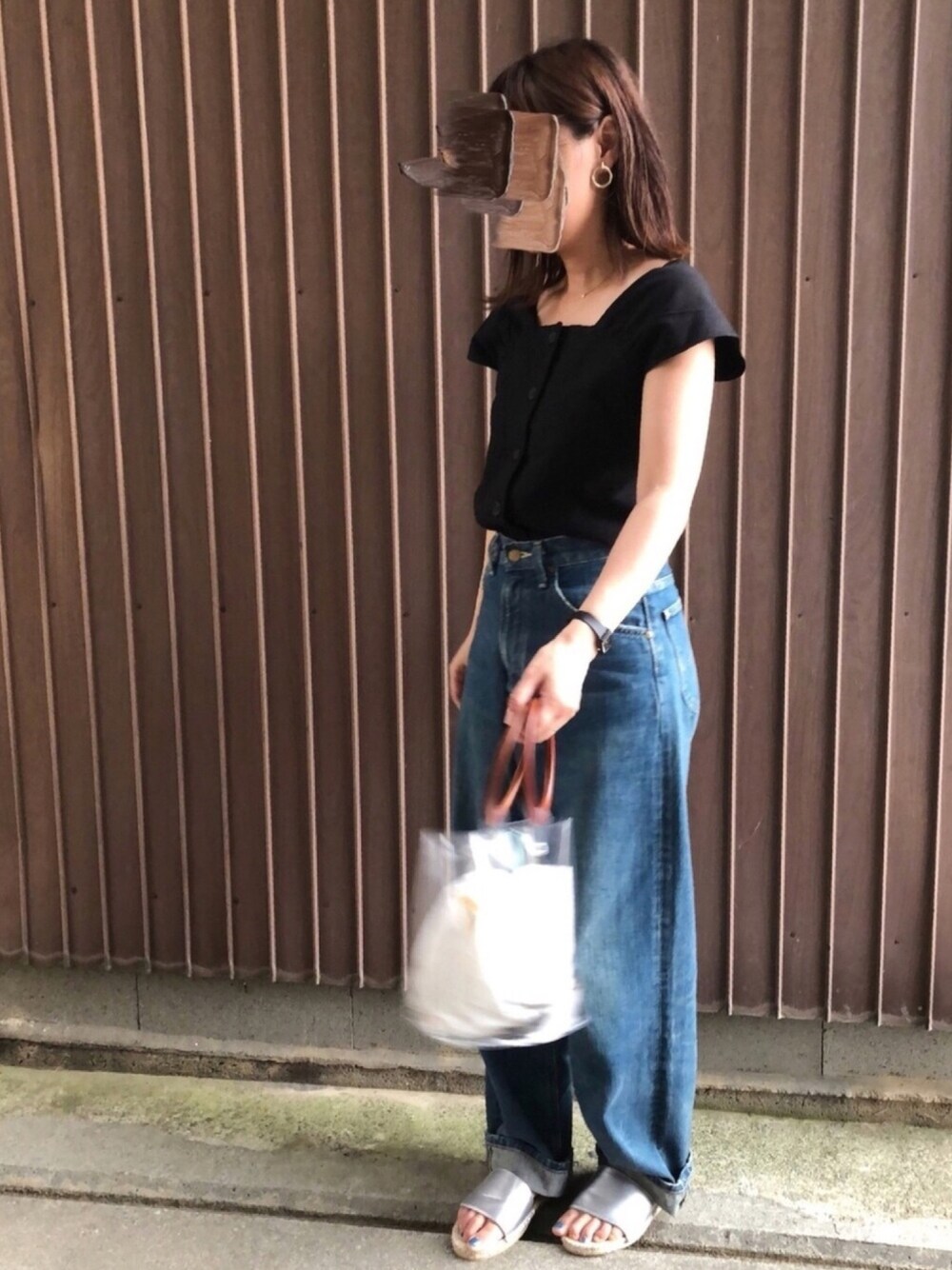 uaのハンドバッグ「ウッドハンドルクリアBAG」を使ったコーディネート