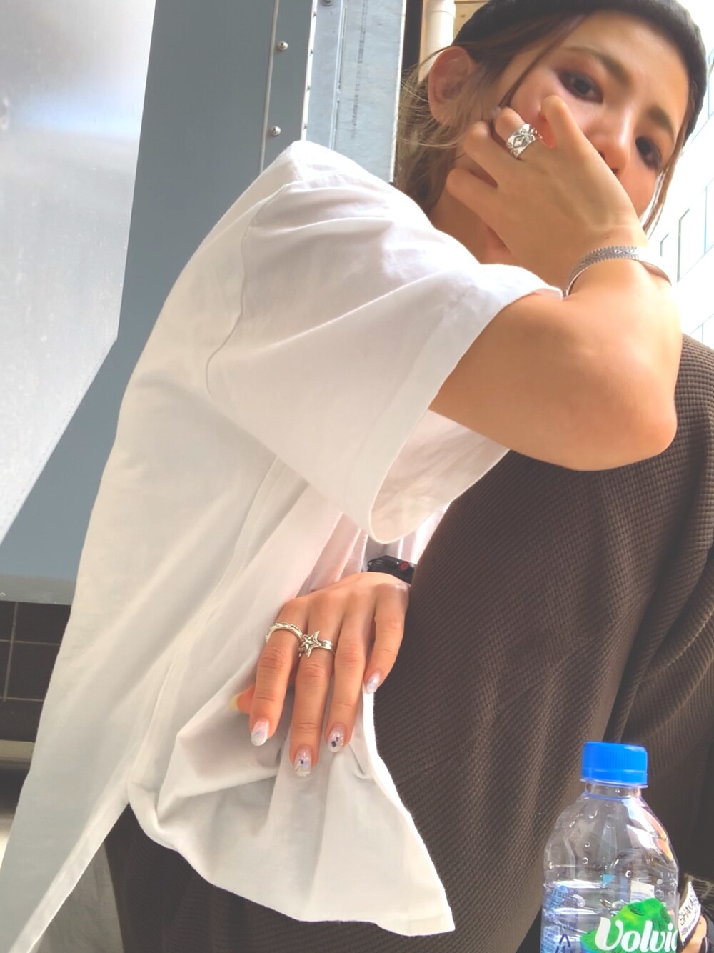 蒸し暑くてゆるゆるな服装で。 リングとバングルはnavajoで揃えるのが気分。