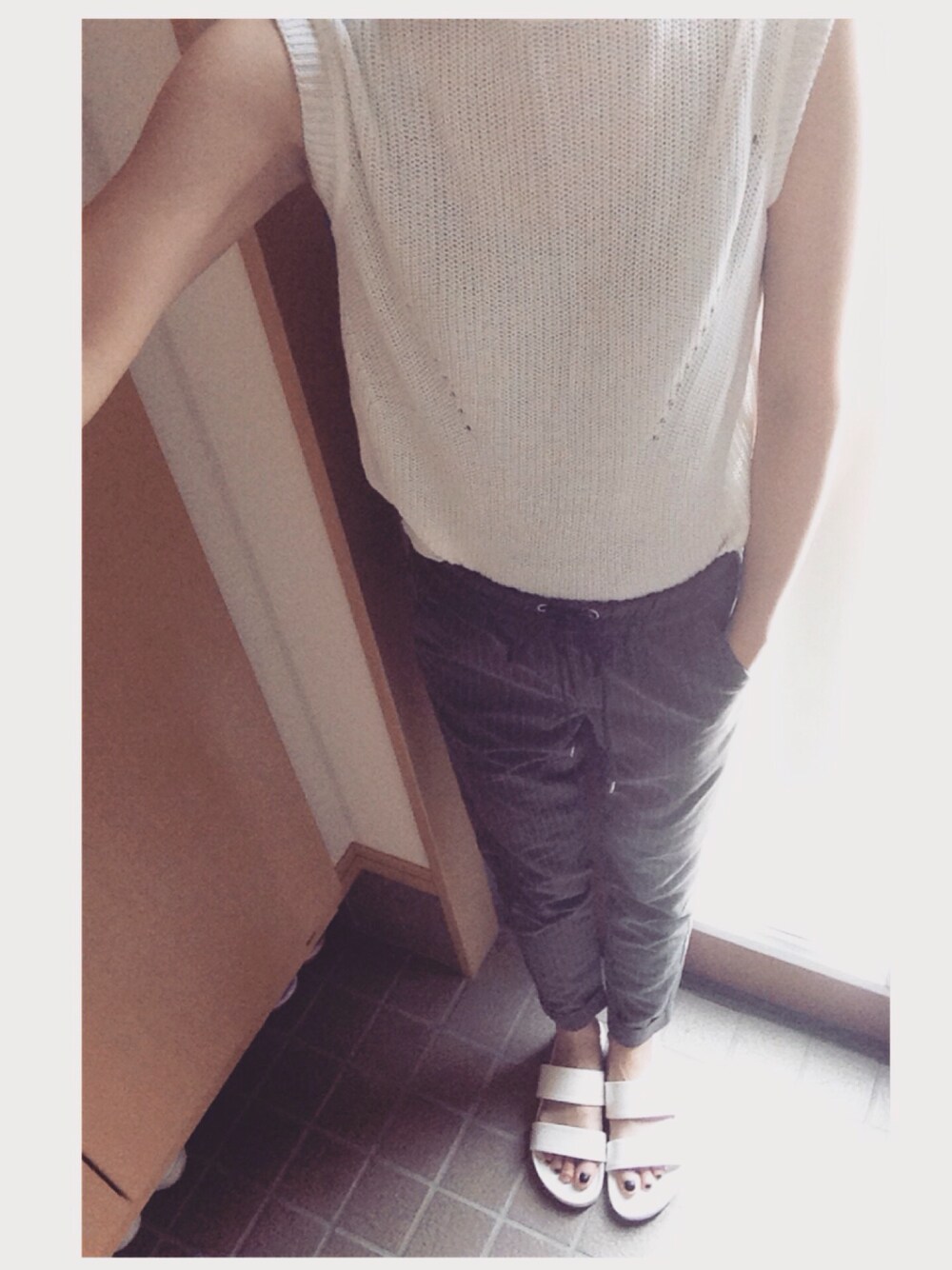 Today's outfit このニットがすきだけど薄すぎて 透ける😑明日から地獄の5日勤‥😑つら😑