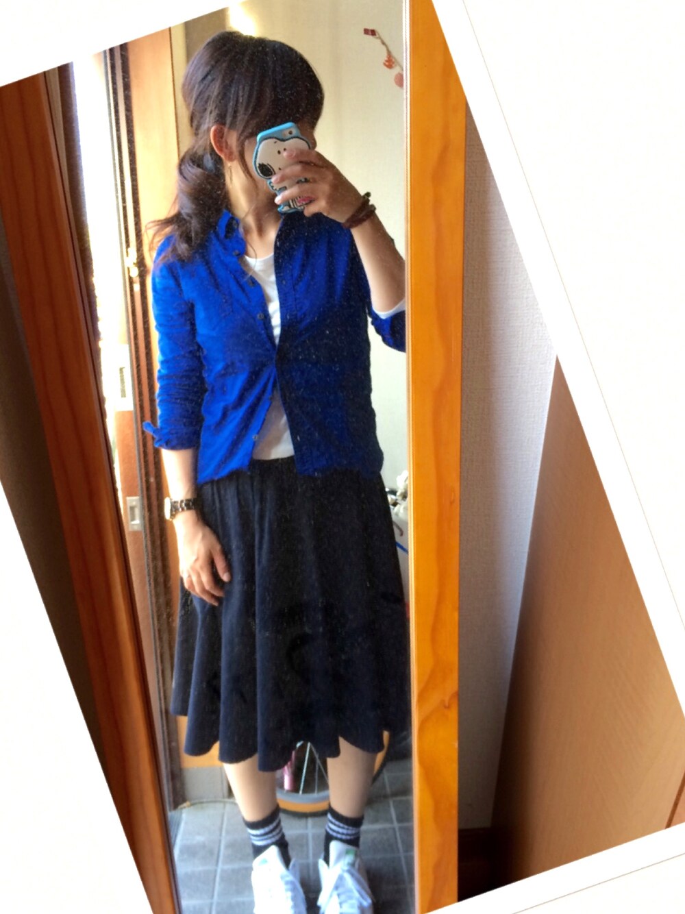 この青シャツが着たくて組んだ コーディネート(*^-^*) けど、どこのブランドか忘れた… ジーンズにしようかと思ったけど 暖かくなってきたし、 スカートスタイルに🎶 しかも、妊婦のあたしには ウエストがゴムなのが助かる( ૢ⁼̴̤̆ ꇴ ⁼̴̤̆ ૢ) 妊婦でもお洒落な感じでいたいなあ٩(ˊᗜˋ*)و