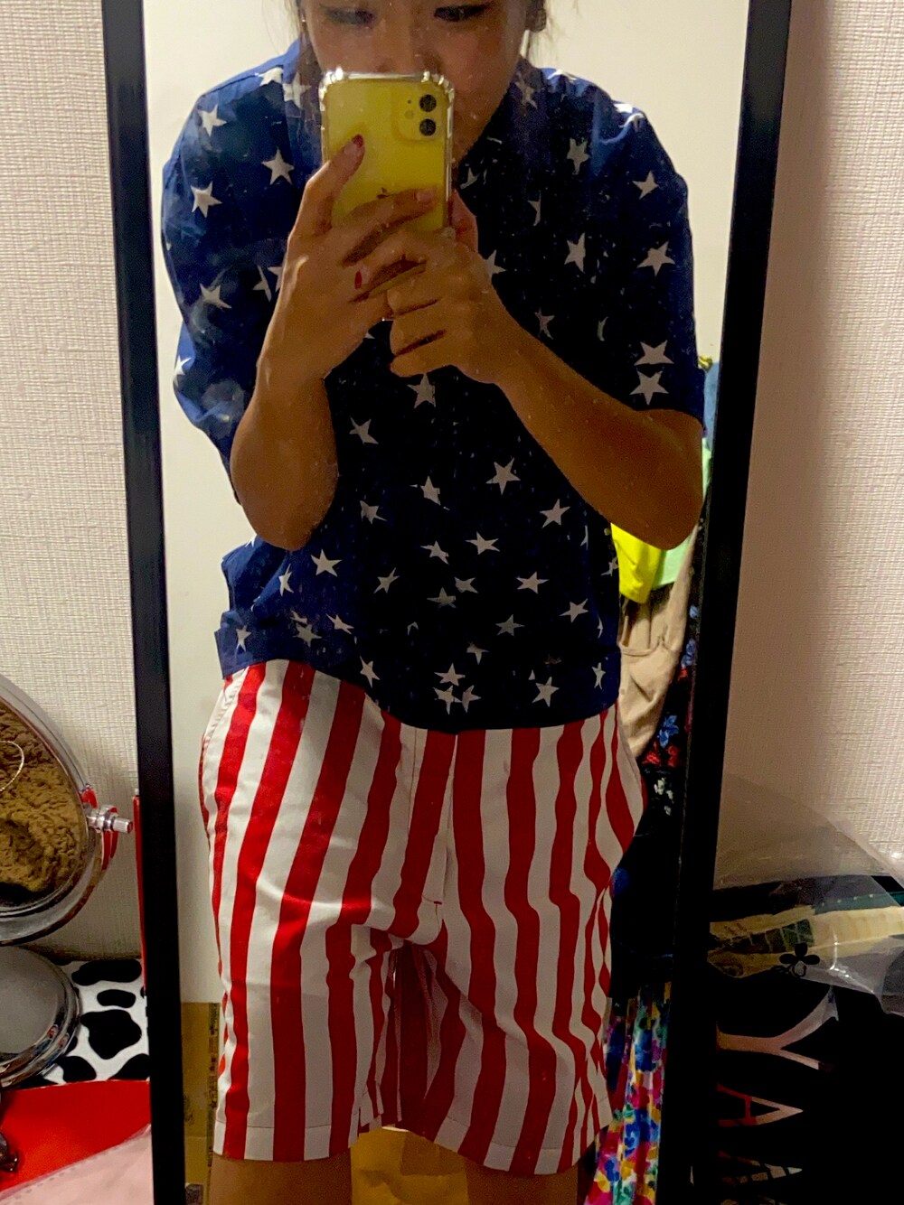 アメリカン🍕🍔🇺🇸 久しぶりに ザ.古着みたいなの買った🥰 どこに来て行こ♡たのしみ 古着屋のおばちゃんのゴリ押しされて お買い上げ♡アリガトゥゴザイマーフ