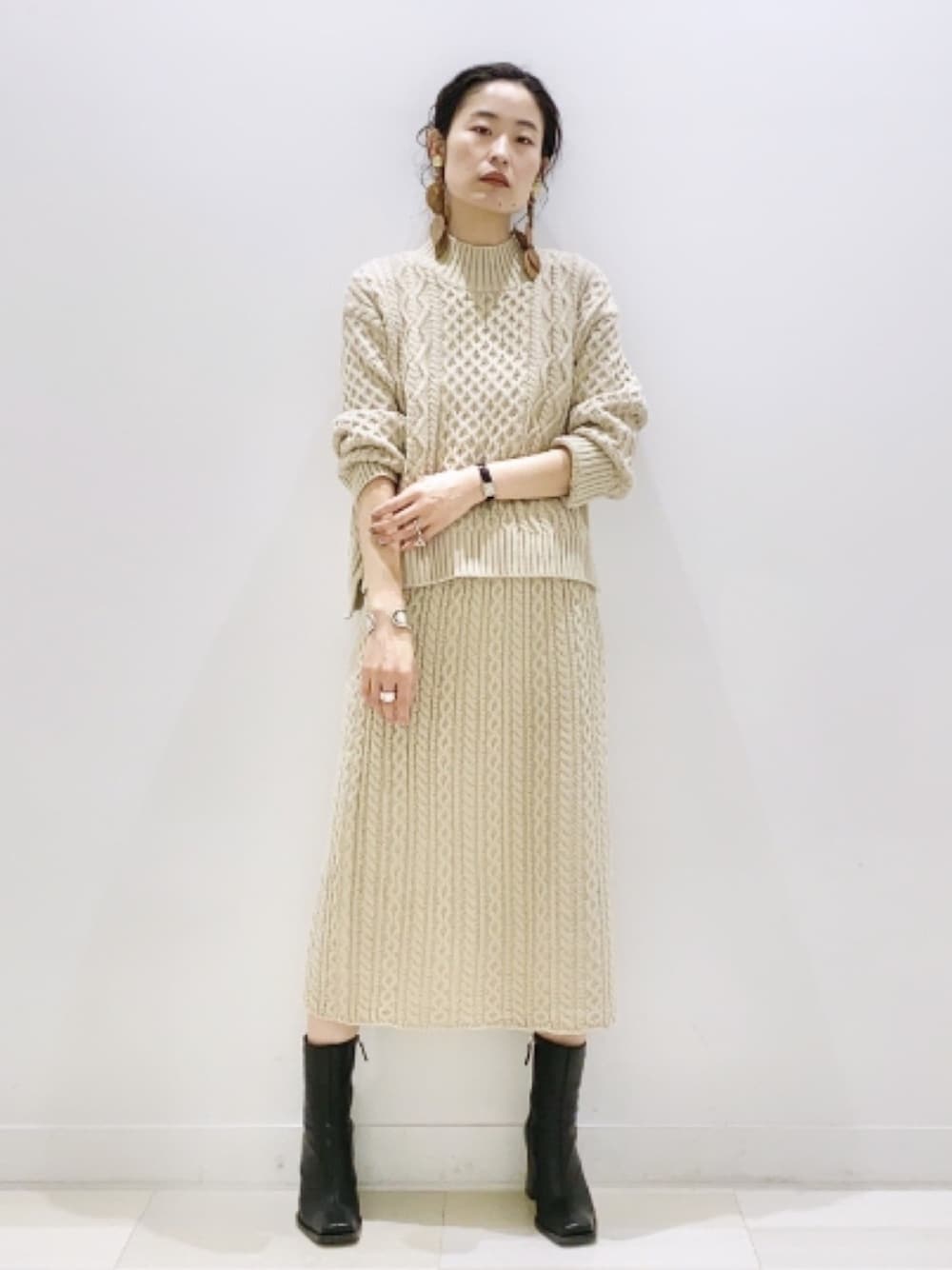 YUKARIのワンピース「ケーブルニットスカートセットアップ/898105」を使ったコーディネート