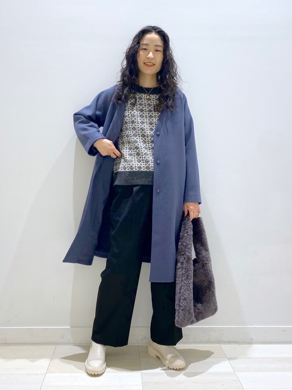 YUKARIのノーカラーコート「軽やかノーカラーコート/947219」を使ったコーディネート