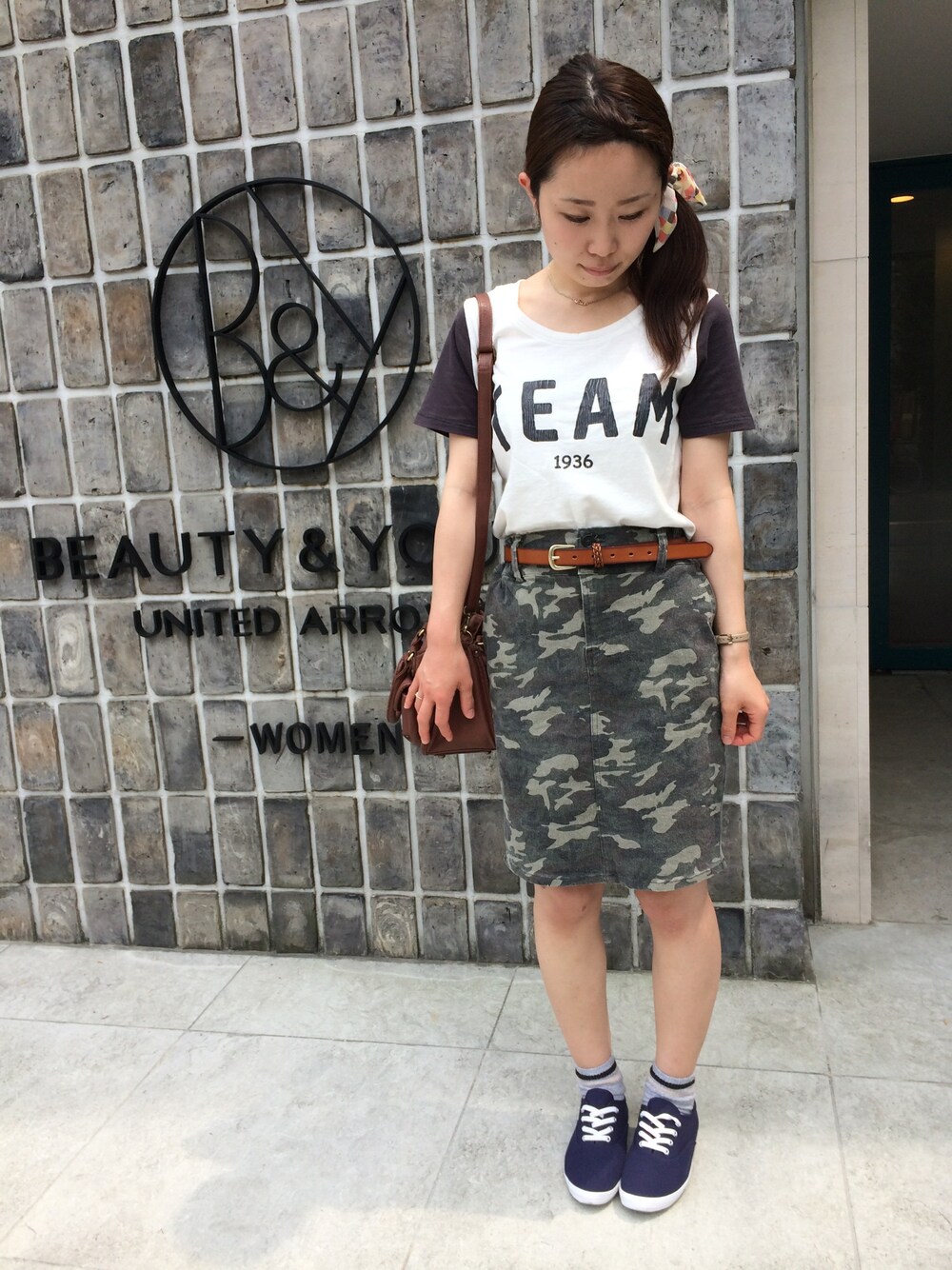 こんにちは*\(^o^)/*♡ 今日はお友達と都内へ来てます٩(๑❛ᴗ❛๑)۶💕 定番のパンケーキを食べてw 雑貨屋さんを巡って、今cafeで休憩ちゅう‥♡ 外暑くて死にそう‥(´;ω;`)笑 そんな今日のコーデは、この前かったカモフラタイトスカート♡を履いてみました*\(^o^)/*✨ 履くだけでコーデのポイントになるから良い〜(*´ω`*) 今期ヘビロテしなきゃ!w そしてなんかお洒落な場所で撮りたい!と言って、何故かアーバンリサーチの前で撮りました。笑 何回も撮り直してくれた友達にほんと感謝(ू ˃̣̣̣̣̣̣o˂̣̣̣̣̣̣ ू)♡ そんなかんじです( •̀ .̫ •́ )✧笑 いつも閲覧、save、フォローして下さる皆様に感謝を込めて♡ nomoyuka.