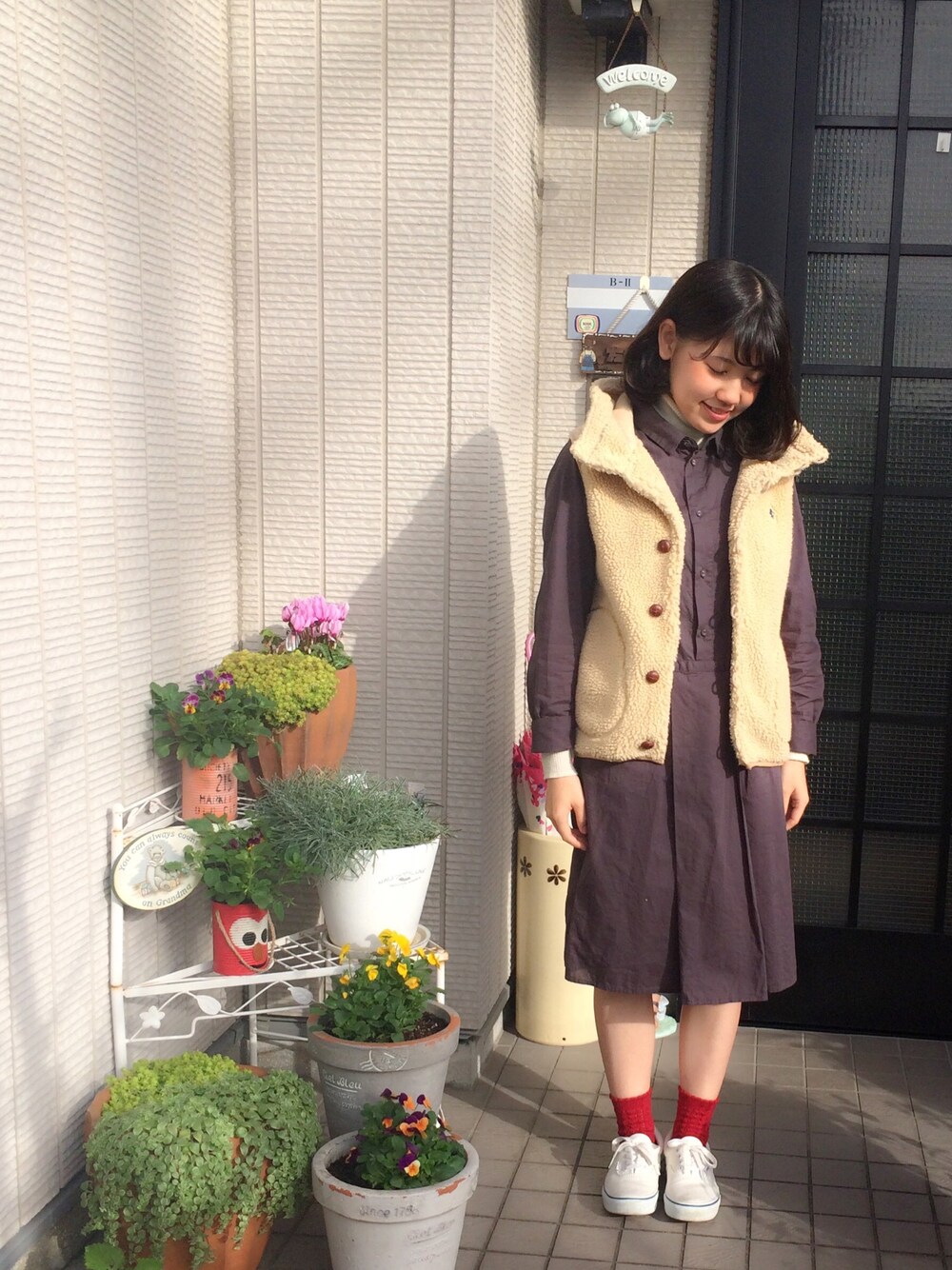yuriのベスト「<15秋冬>【Gymphlex(ジムフレックス)】ボタンパーカーベスト ボア」を使ったコーディネート