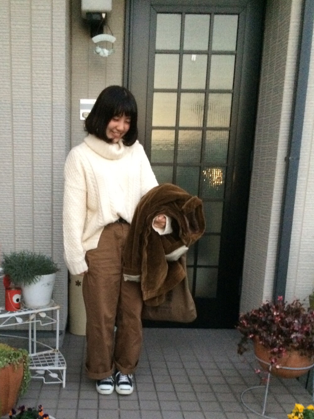 yuriのニット/セーター「タートルネックケーブル編みニット」を使ったコーディネート