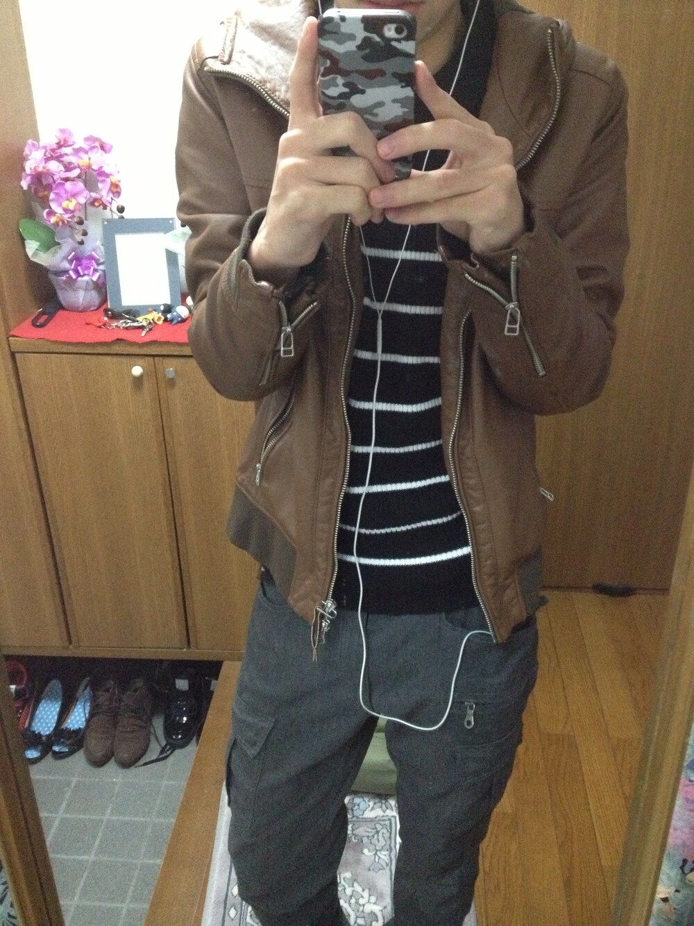 レザージャケット:HARE ボーダーニット:H&M グレーのスラックス:TK スリッポン:バンズ 今日はスラックスを履いて動きやすい楽チンコーデにしました! 雨が降る確率が50%と言うこともありライダースにしました。パパッと拭けるしね!笑 足元は見えてないけどロールアップにしたかったからスリッポンにした! Save&Followよろくです(((o(*゚▽゚*)o)))