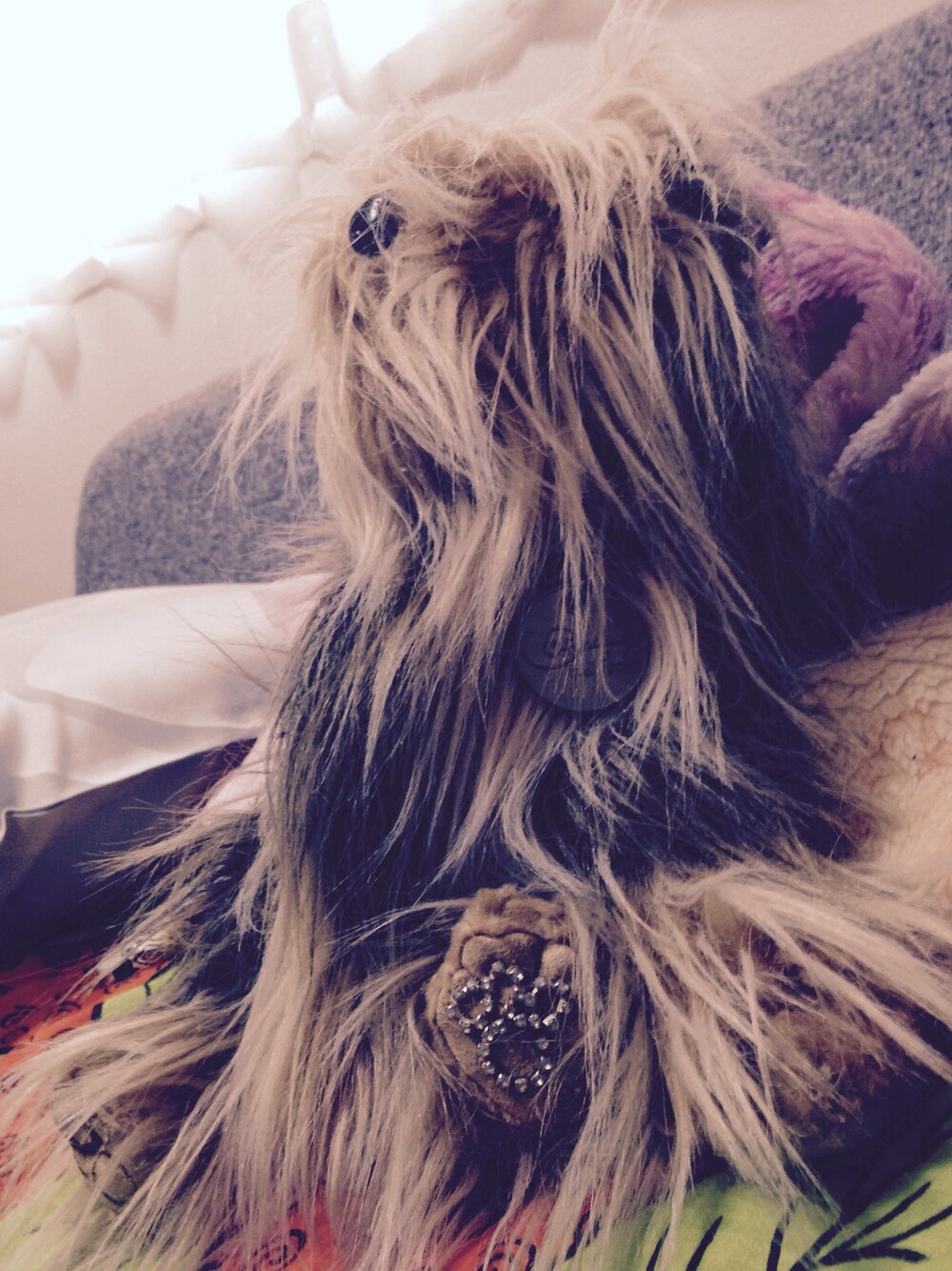 お気に入りのヨークシャテリアのhandbag❤︎ ほとんど物が入らないので携帯ケースだった。 …iPhoneにかわってから入らナィ。 何いれよ。。。
