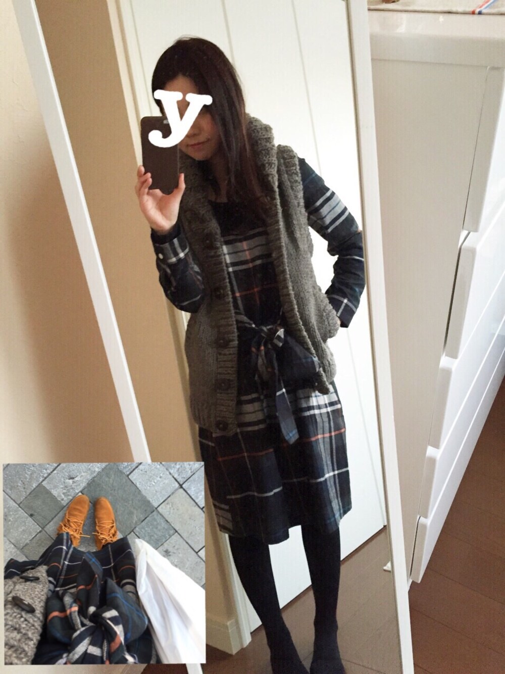 ニットベスト:UR ワンピース:UR ブーツ:ミネトンカ ワンピース私の身長には少し長かったなぁ… 暖かい一日でした
