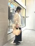 【シャツ】 着用サイズフリー/普段サイズ7〜9号 薄手で柔らかなハリのあるストライプシャツ。背中にデザインが入っているので1枚でもオシャレ見えしますし、重ね着もしやすい柔らかさです。 【スウェット】 着用サイズフリー/普段サイズ7〜9号 ゆったりしたシルエットのスウェットで重ね着もしやすいです。 アイボリーのカラーなのでスウェットでもカジュアル見えしすぎず大人っぽく着られますよ。 【スカート】 着用サイズ36/普段サイズ7〜9号 伸縮性がありとても楽にはいていただけるスカート。ハイウエストのデザインでスタイル良く見えるアイテムです。