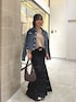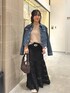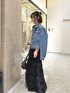 【ニット】 着用サイズフリー/普段サイズ7〜9号 透け感のある、和紙を使ったニット。カラッとした軽い素材でゆったりしているので真夏にも使いやすいと思います。着痩せしてみえるのが嬉しいニット。 【Gジャン】 着用サイズフリー/普段サイズ7〜9号 コンパクトなGジャン。定番の形なのでスタイリングしやすい1着です。 春はもちろん、秋冬のレイヤードにも使いやすいアイテムです。 【スカート】 着用サイズ36/普段サイズ7〜9号 リアルバイしたスカート。オールシーズン使いやすく、裾のシアー部分から透ける足が綺麗見えします。 36サイズで149センチの私には長いため、いつもウエストを一つ折り曲げ着用しています。裾の透け具合ですが、タイツをはいたりレッグウォーマーを使ったり素足だったり、気温により使い分けますが何を中にはいているか分からないくらいの透け感です。