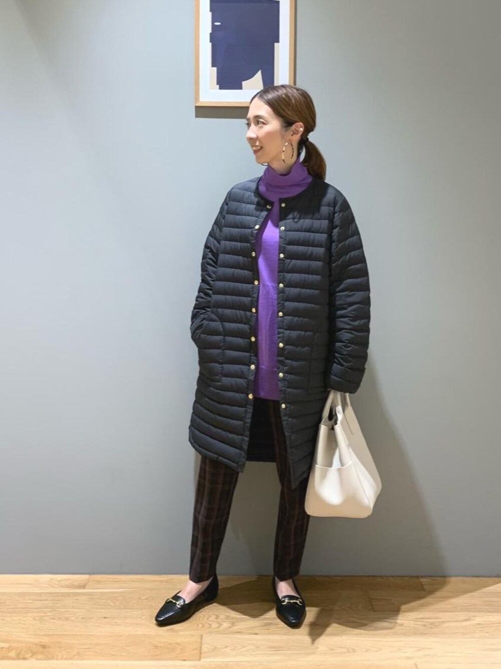 ●身長:157cm ●普段サイズ:トップス 36/ボトムス 36/シューズ 23.0cm・23.5cm 【サイズ感】 アウター 標準的 トップス ややゆったり パンツ ややすっきり シューズ 標準的 【コーディネートポイント】 別注のTraditional Weatherwearのロングダウンコートをメインに綺麗目カジュアルなスタイリングにしました。インナーダウンとしてもアウターとしても着用出来るコートはカジュアルすぎないデザインとサイズ感なのでオンオフ兼用でお使い頂けるオススメなアイテムです。