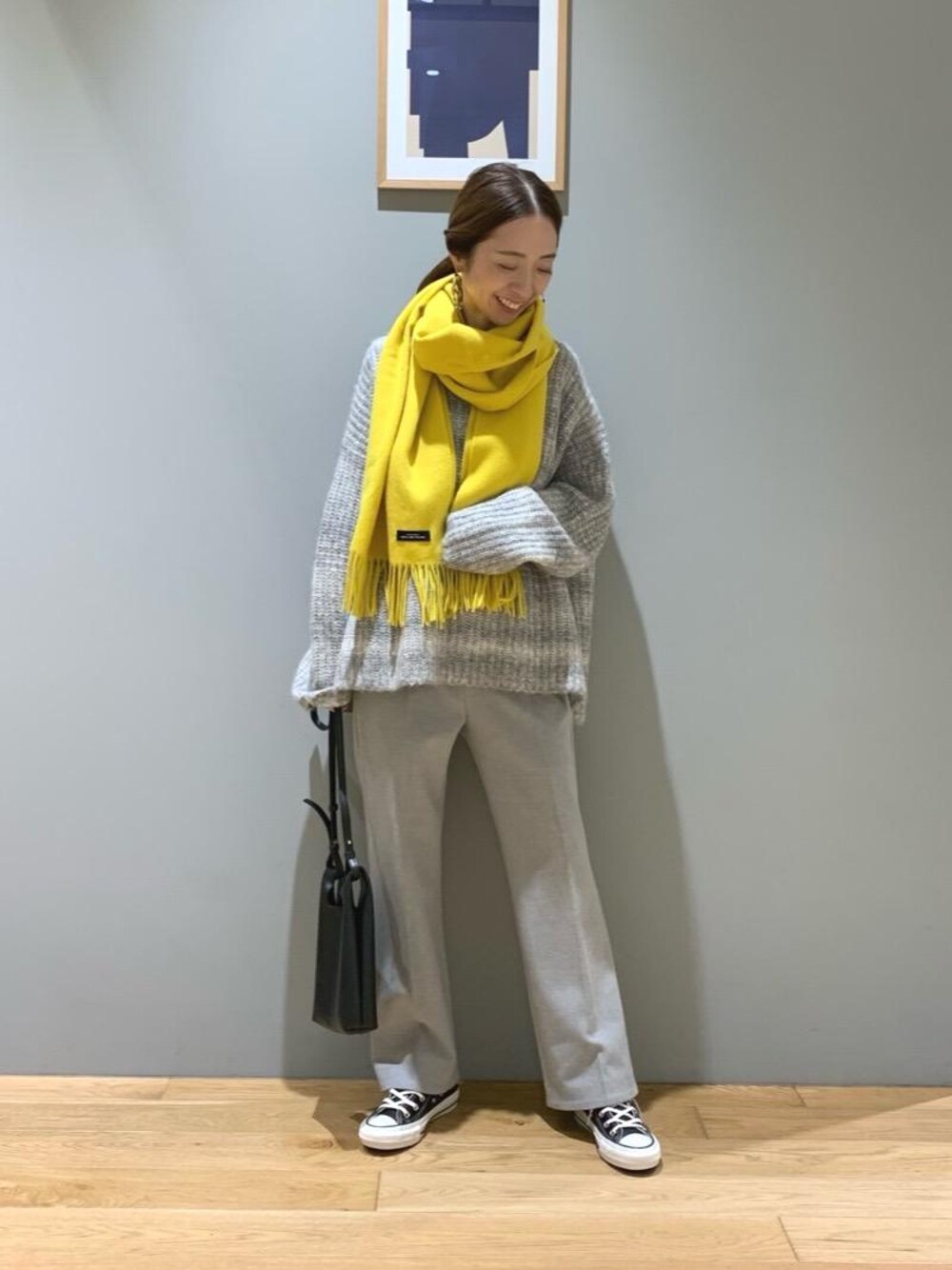 ●身長:157cm ●普段サイズ:トップス 36/ボトムス 36/シューズ 23.0cm・23.5cm 【サイズ感】 ニット ややゆったり パンツ 標準的 シューズ 標準的 【コーディネートポイント】 グラデーションの色合いが可愛いブラクトメントのニットに同色のパンツを合わせたワントーンコーデです。アクセントにイエローのストールをプラスして、足元はスニーカーでリラックス感あるカジュアルスタイルにしました。