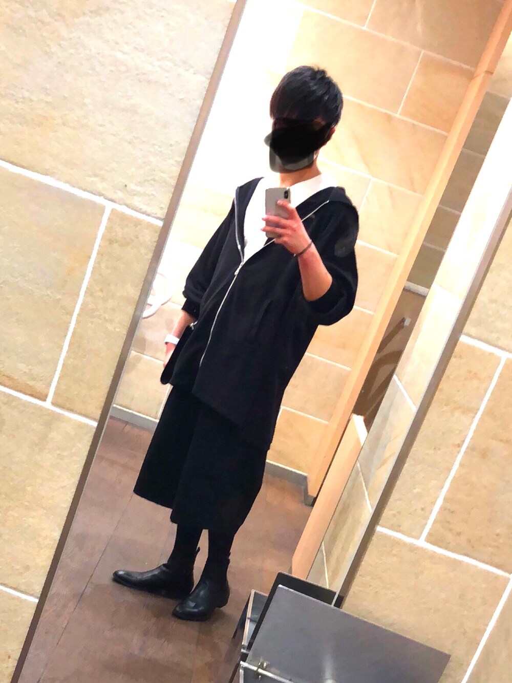 ファストファッションでハイブランドを再現したかった。 トップスはギャルソン風でパンツはヨウジヤマモト風、ブーツはサンローラン風