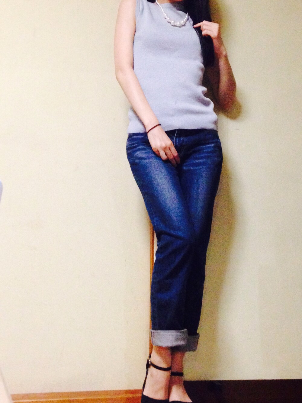 昨日の( ´ ▽ ` )ノ セミナーだったのでシンプルなパンツスタイルです( *`ω´) ジーンズは古着屋さんで購入♡