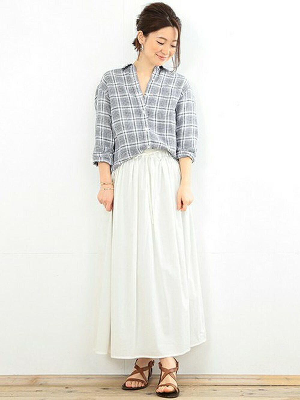 今年もついに登場!! 毎シーズン2色買い鉄板なマキシスカートです。 まずは1番春らしいホワイト! 着膨れしないような、考えられたギャザーの入れ方とシルエットもとても良いです◎