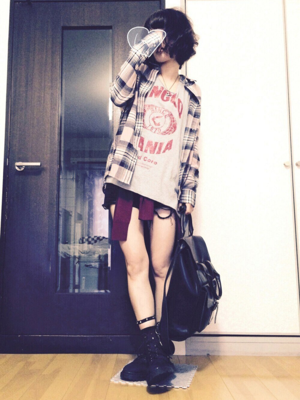 雨がふると寒い…。 今年の秋冬はぴんくとグレーな気分 ANGLOMANIAの変形タンク 可愛いんだよーよー( ´・‿・`) 脇がばっくりあいている ライブのときこれ着る