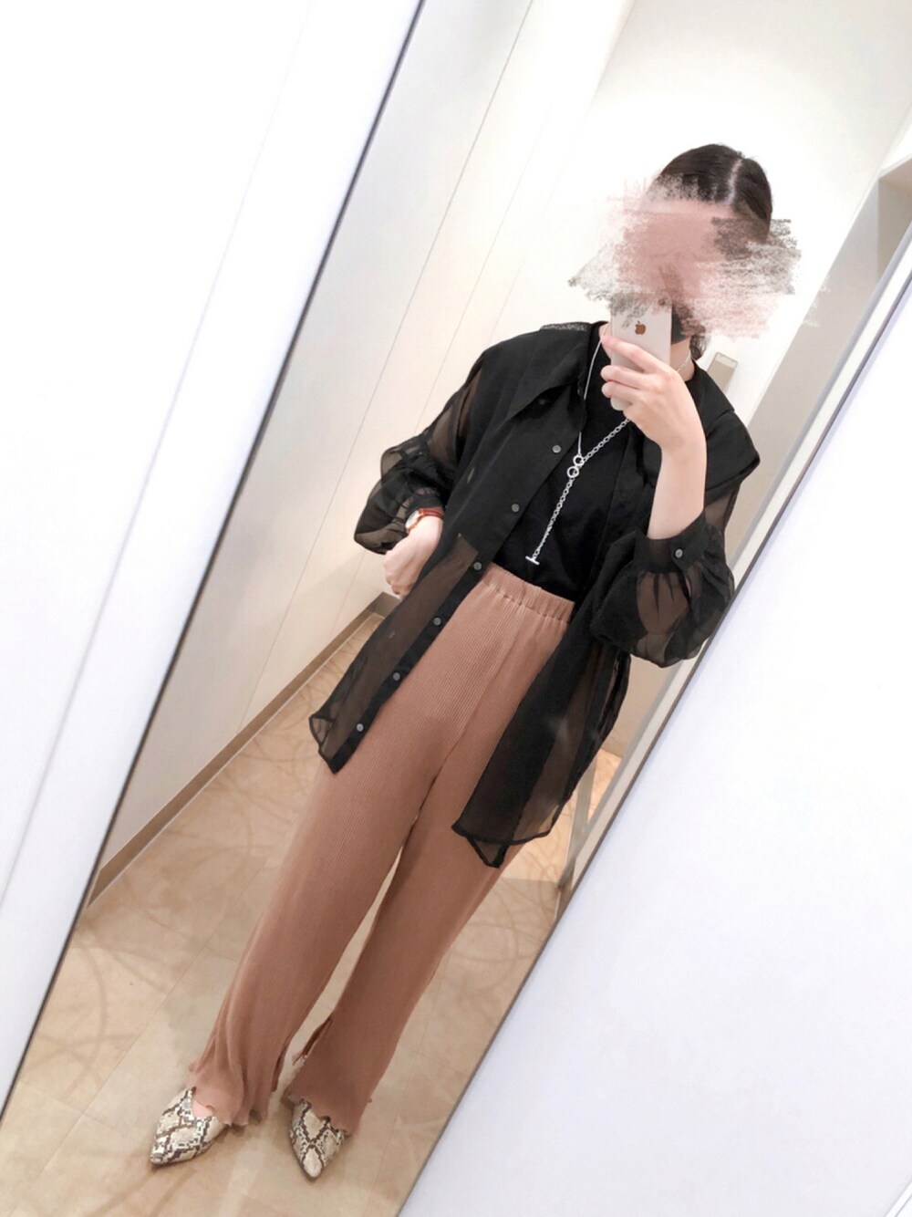 やっぱり夏でも黒が好き🎐 これも仕事コーデ!! プリーツパンツは形が上品でお気に入り! 黒のシアーシャツは、襟が大きくて可愛いのと、どこでも使え過ぎて超万能🥺🥺