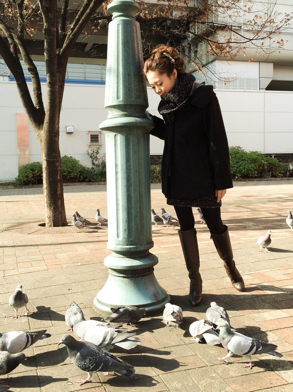 ハトポッポちゃんが寄ってきた♪ コールハーンのブーツはNIKE AIRがインソールされてるからハイヒールでも楽チンなのだ♡